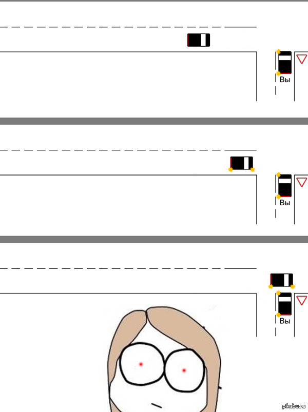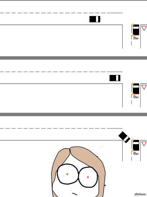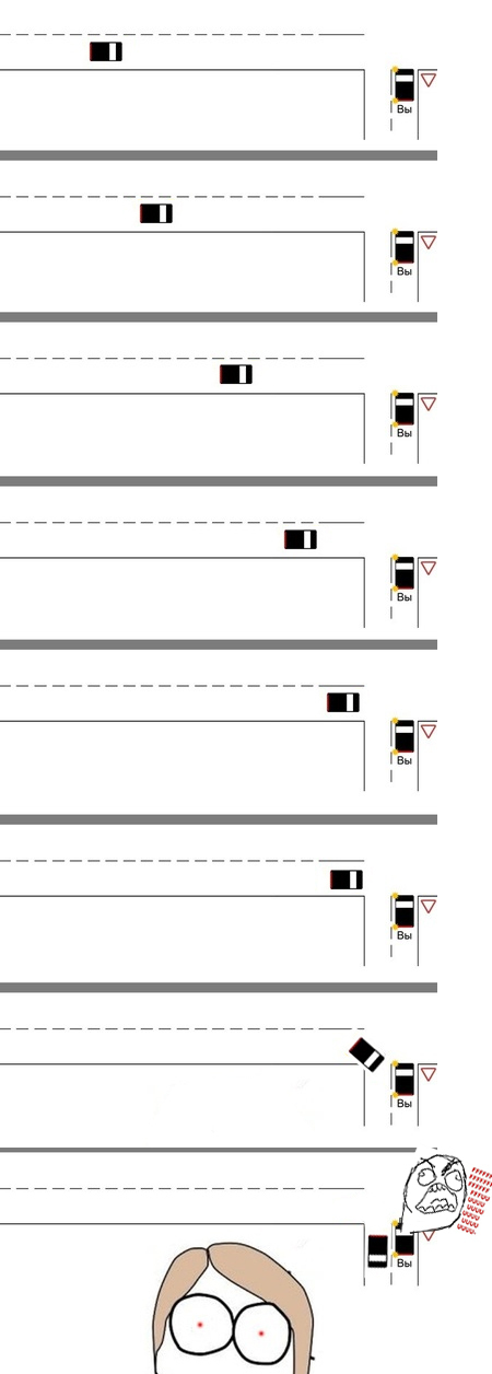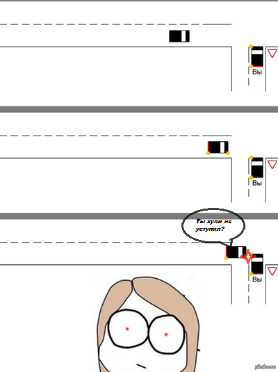 Угу, на экзамене в ГИБДД это сразу 5 баллов за то что не пропустил ТС, и вот хрен знает, что делать в таких случаях.