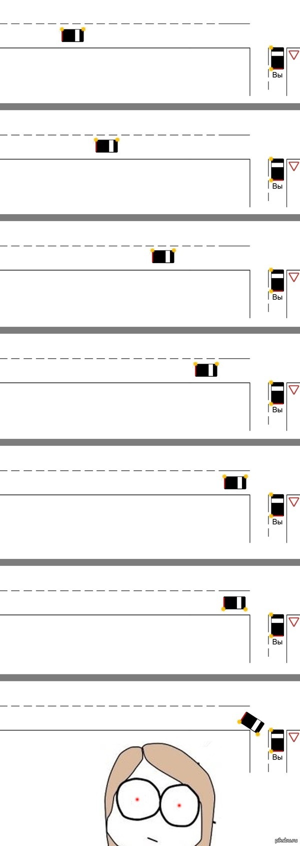 Как раз на последней картинке не нужно делать удивленные глаза а спокойно начать движение.