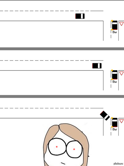 Самое страшное, что им пофиг что ты едешь. Меня один так на встречку вытолкал.