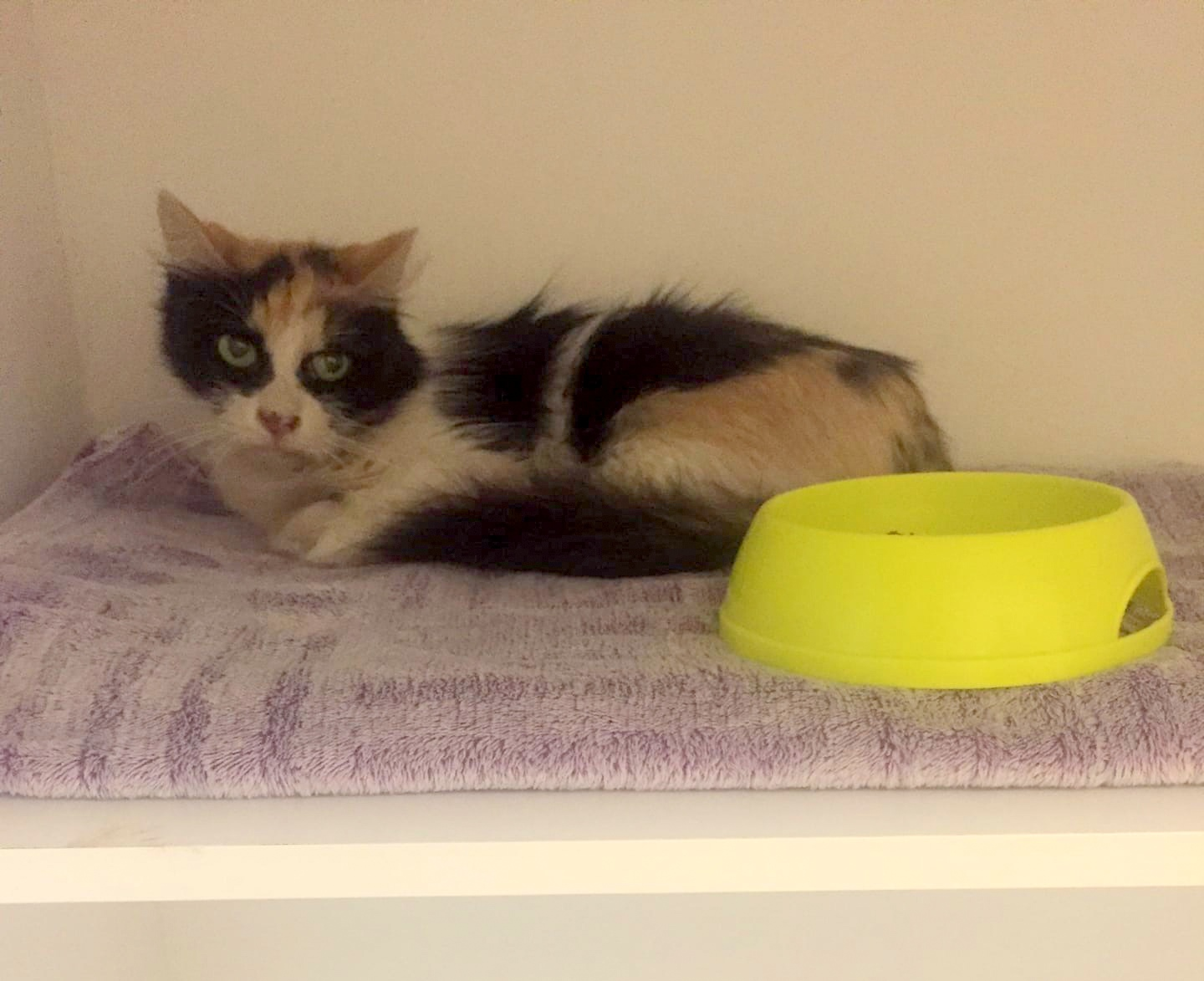 Радует, что здесь Майя не прячется, так как укромных мест просто нет. И хорошо. Привыкла быть на виду, хорошо ест, поправилась.