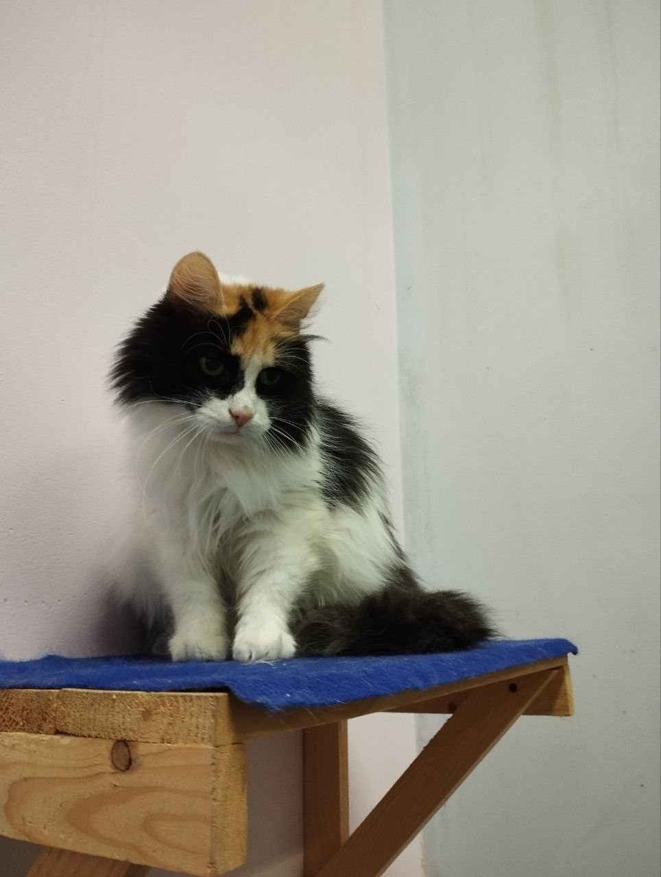 Татьяна (август 2024): Знакомьтесь, Майя. Взрослая кошка, наверное, лет 7-8. Очень осторожная, чрезвычайно умная. Я ловила ее два раза. В первый раз Майя умудрилась открыть лапой дверь переноски и сбежать. Хорошо, что это случилось в нашем дворе. Умудрилась сбежать из клетки в клинике, пыталась открыть дверь бокса на прошлой передержке. По характеру очень осторожная, боится людей, все время сидела в углу между боксом и стеной.