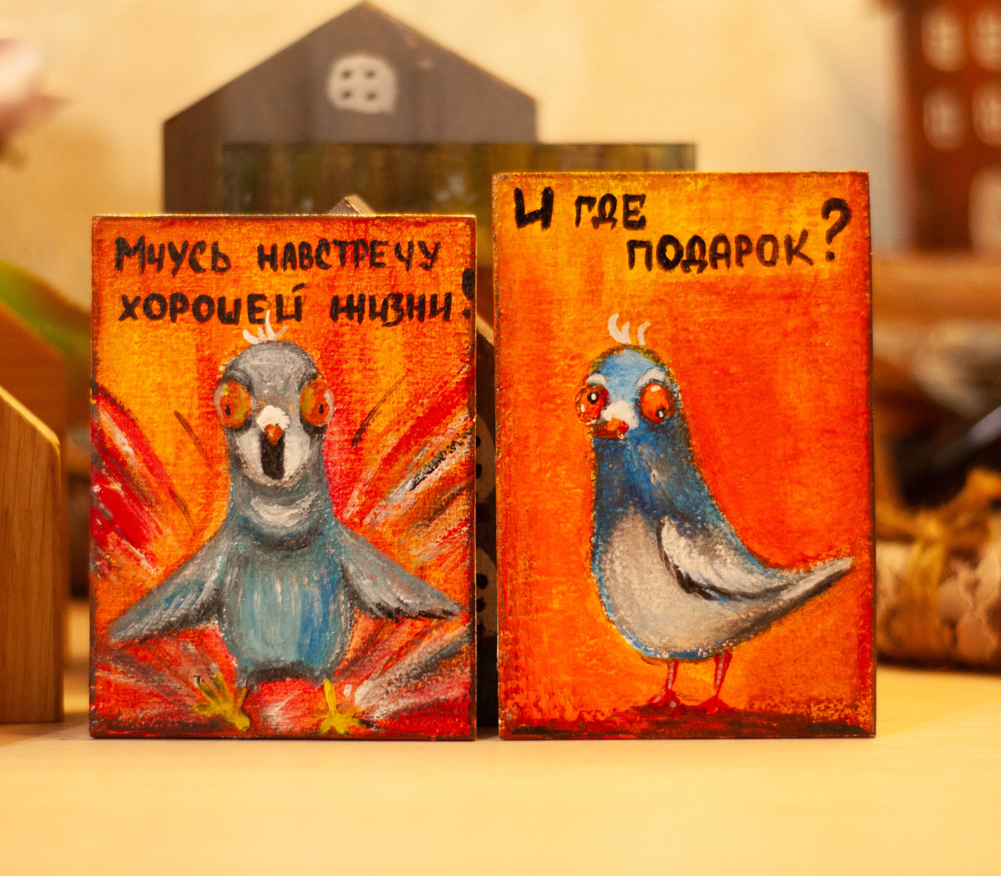 145 ElinkaUglova39 Пишу картины и вяжу уют Сказочная мастерская Мчу на встречу хорошей жизни 1 день назад Да кому я вру? На работу я мчусь на всех парах, но по дороге озираюсь: вдруг встречу хорошую жизнь. Серия магнитиков про оголтелого голубя. Акрил и масляная пастель. [моё] Юмор Декор Магнитики Жизненно Забавное Сувениры Голубь Веселье Подарки 19 5 2 Ещё 0