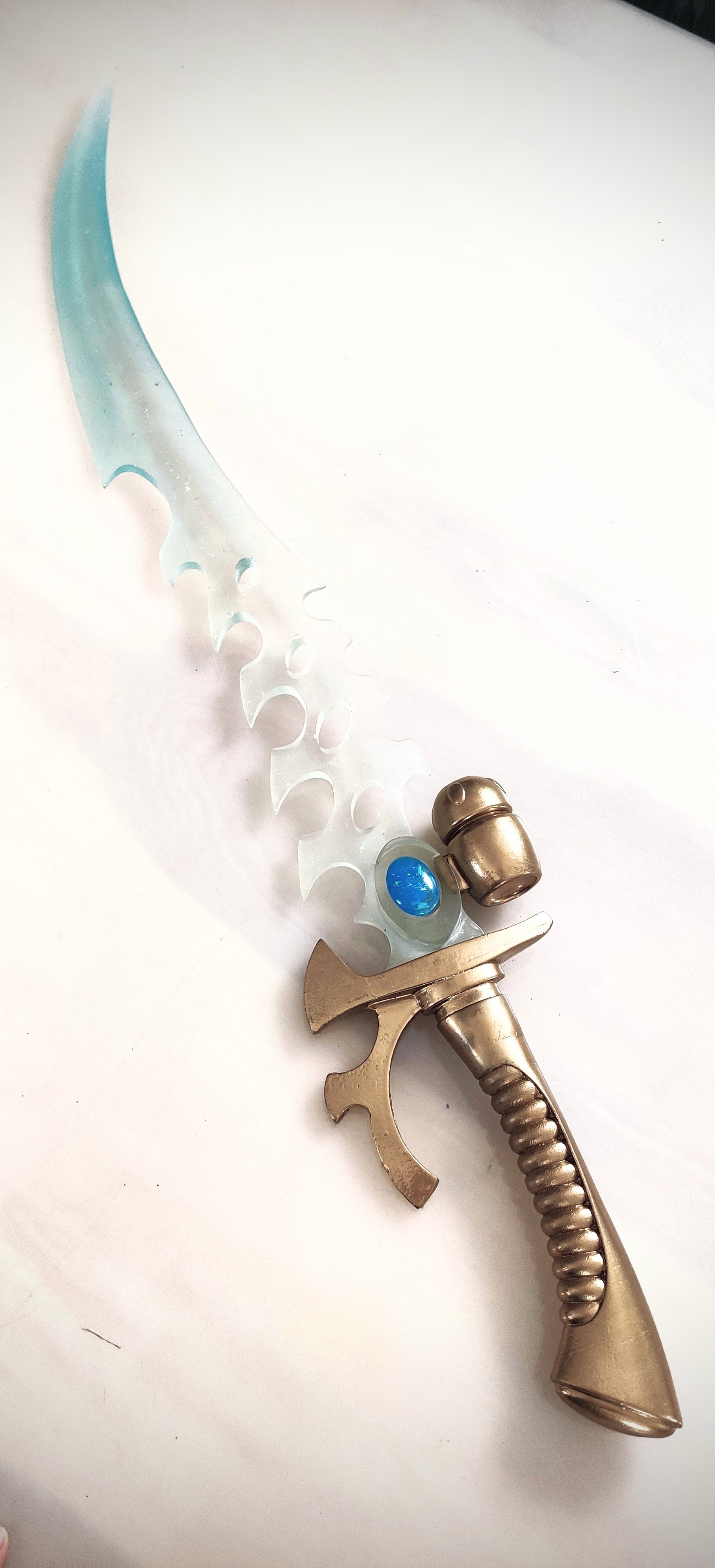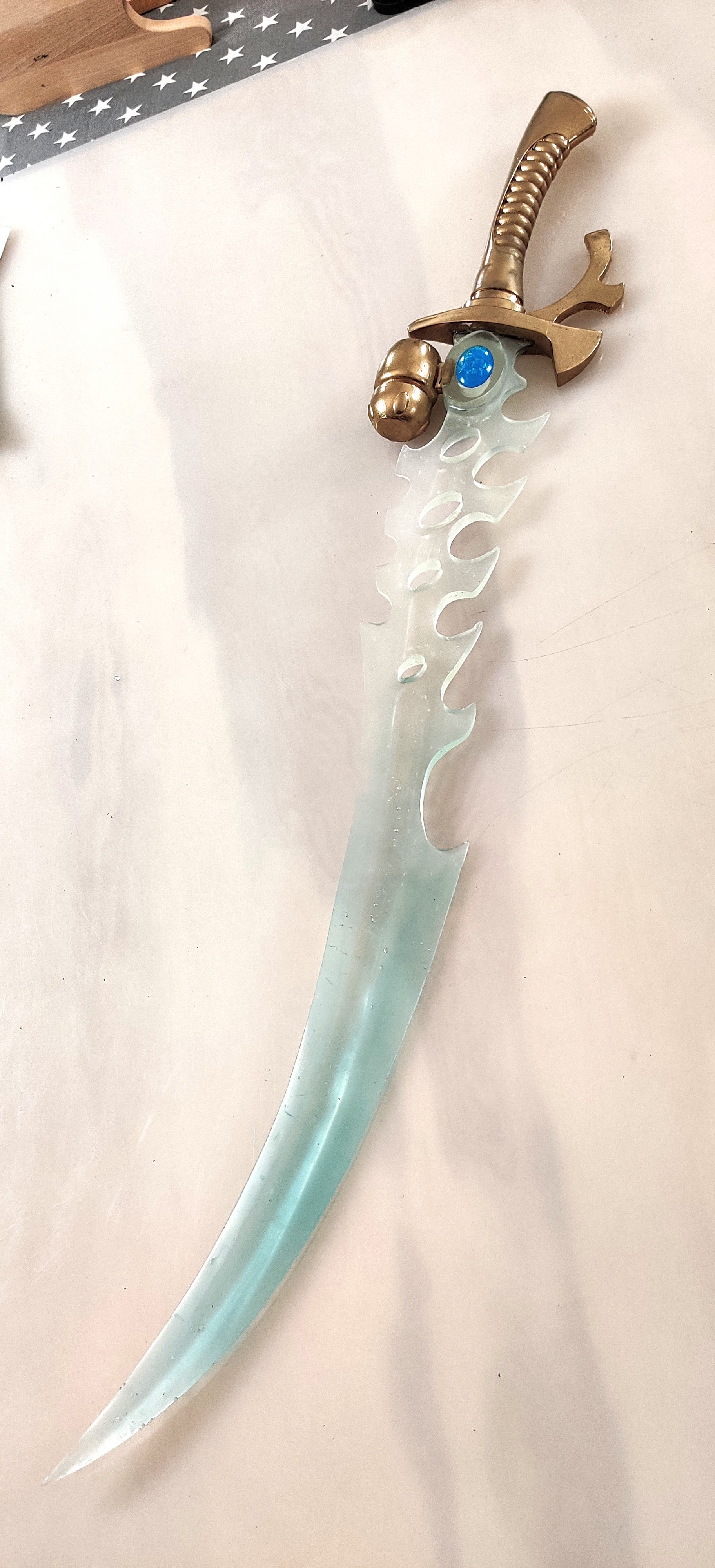 На вопрос, почему сделали клинок прозрачным, могу ответить только "because we can". Очень хотелось попробовать отливку прозрачного крафта крупного размера. Это очень заёбисто) возможно, в следующий раз я заказала бы выточить такой клинок из прозрачного акрила.