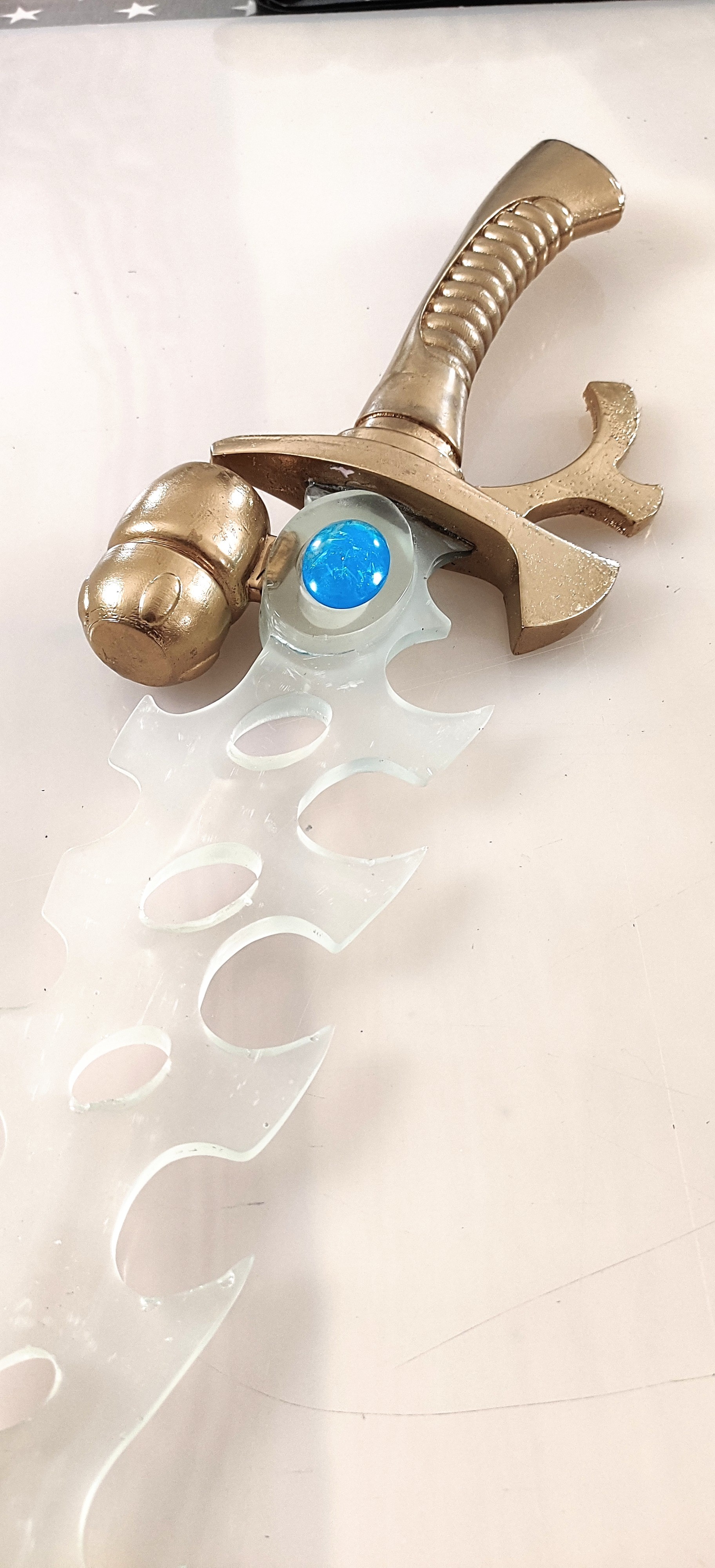 Меч был 3Д смоделирован на заказ, отпечатан по кускам и склеен