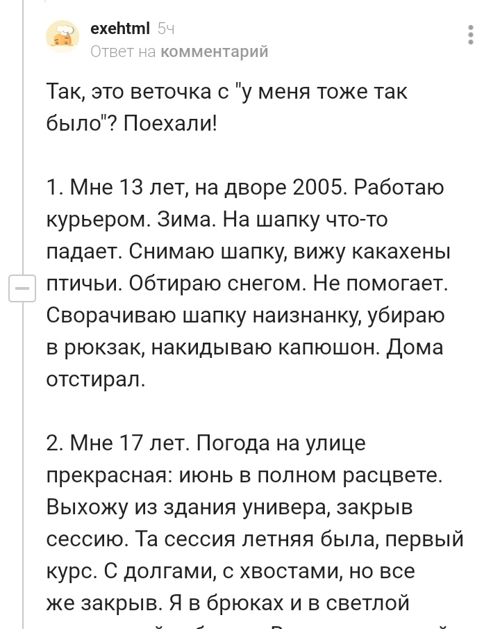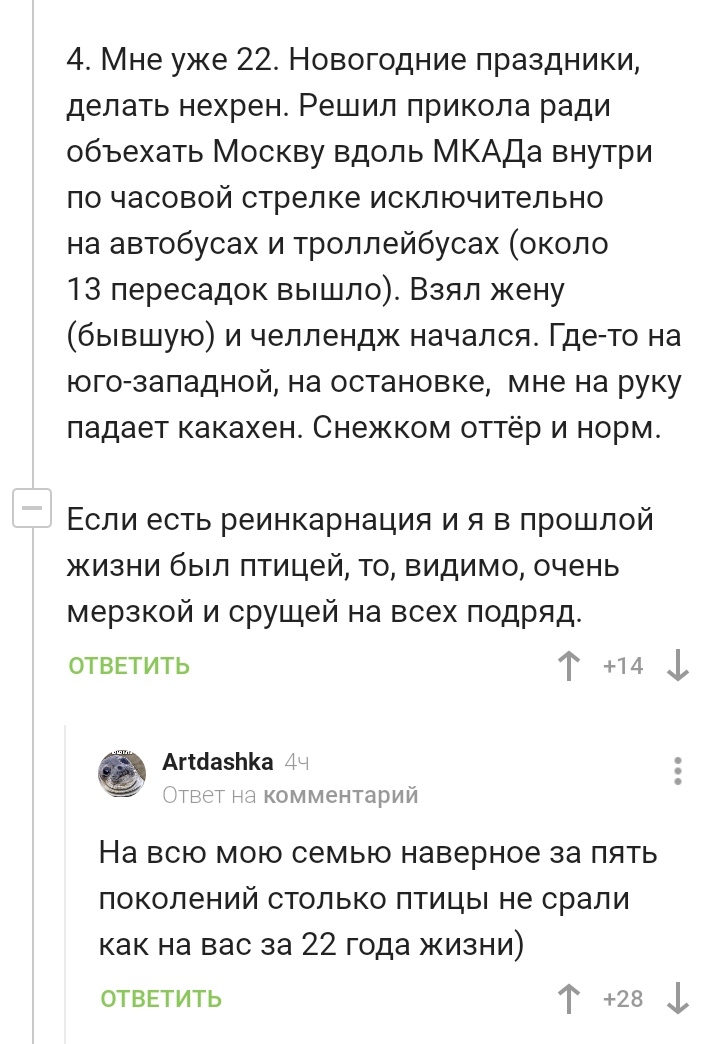 1498 Kyudzo2019 Меченый птицами 5 лет назад #comment_185788524Ссылка на пост: Хочется верить, что его ждет большАя удача)) Птицы Помет Попадание Скриншот Комментарии на Пикабу Длиннопост 8 1 1 Ещё 0