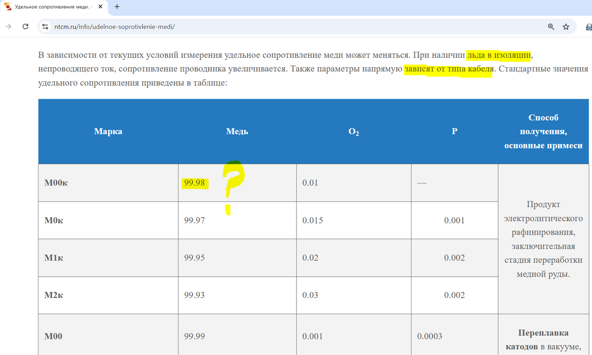 Достали эти ЕГЭшники. В советской школе нас учили, что удельное сопротивление меди - 17..17,5 Ом·мм²/км. Что стало с медью за эти годы? И не только с медью 😢