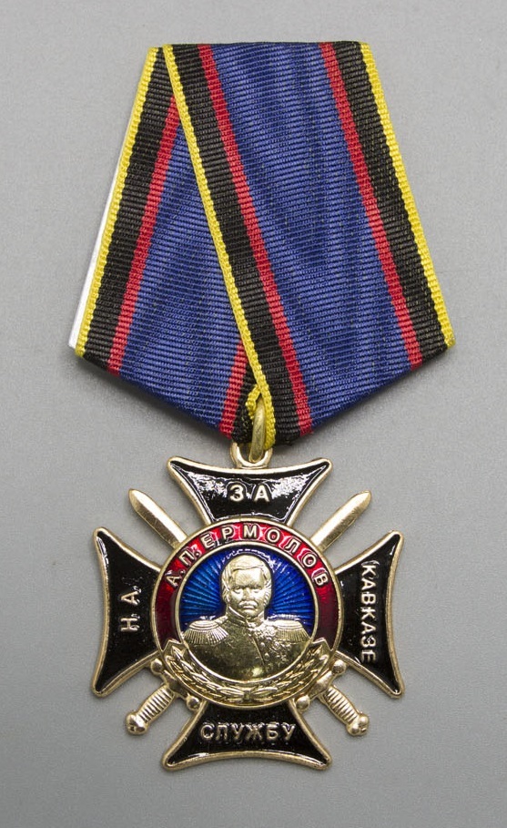Цвет медали (золотистый) и ленты (серый (серебристый), черный) соответствует историческим цветам офицерского креста «За службу на Кавказе», который изготавливался из золота (серебра), с покрытием черной эмалью.