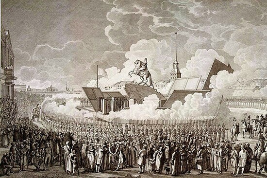 По приказу Екатерины II Фальконе пригласил в Санкт-Петербург князь Голицын. Советовали обратиться именно к этому мастеру профессора Парижской академии живописи Дидро и Вольтер, вкусу которых Екатерина II доверяла.