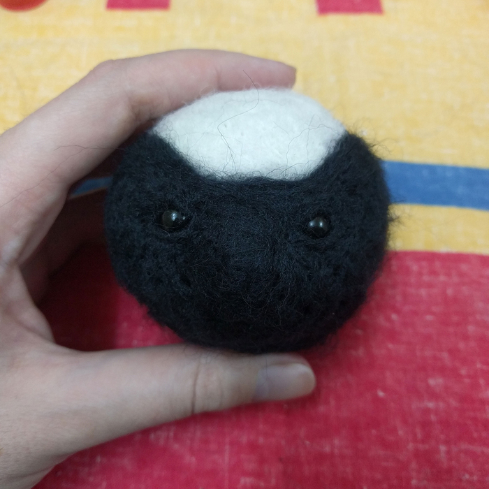 А теперь покажу, как же он появился на свет. Для начала я сваляла небольшой шарик из шерсти. На этом этапе он еще мягкий и очень приятно пружинит ) Надо продолжать уваливать шерсть.