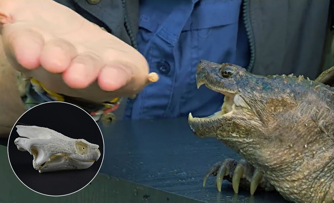 Откуда такая смелость, ведь прятаться в панцирь эта черепаха не умеет? Ничего страшного, природа всё предусмотрела и наделила животинку фантастическим оружием – мощными клювастыми челюстями и крепкими длинными когтями, а ещё способностью стремительно выбрасывать шею вперёд. Сила сжатия челюстей этой зверюги может достигать 80 кг на кв.см!