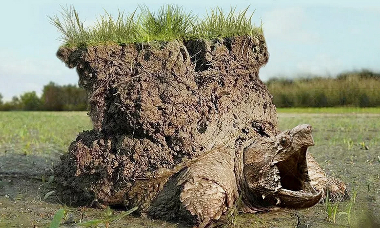 Каймановая черепаха – отнюдь не милая медлительная животинка из тех, что представляются нам при мысли о черепахах. Каймановая черепаха – чистое зло во плоти, и она по-настоящему опасна. Обитают эти бронированные боевые машины в США и Канаде, населяя реки, пруды и озёра с илистым дном, где им легко закапываться, а вымахать они способны до 50 см в длину и набрать вес в 30 кг.