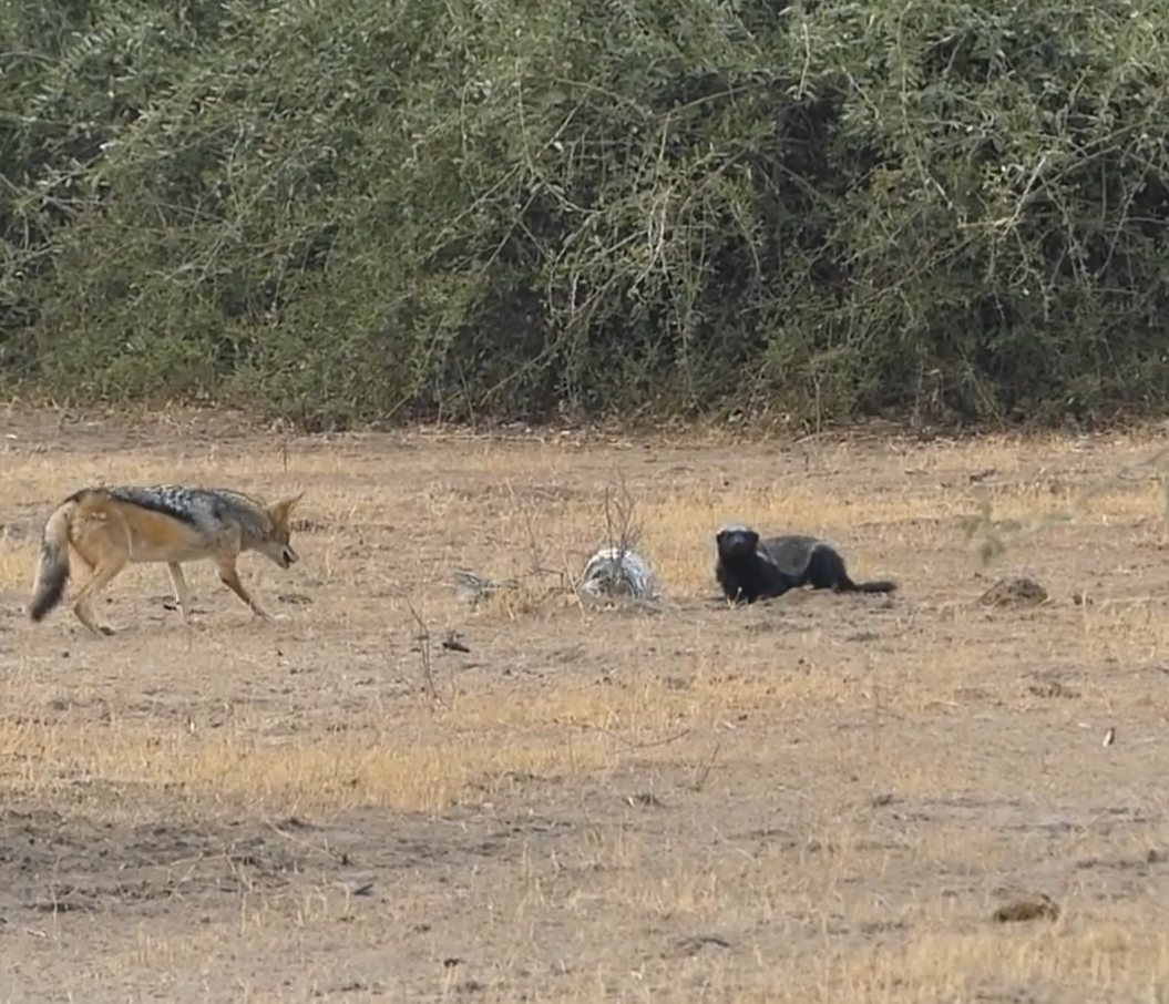 Все наоборот. Это медоеду кто угодно наваляет. То бородавочник, то орикс, то каракал, то шакал. Или даже пара южноафриканских лисиц.