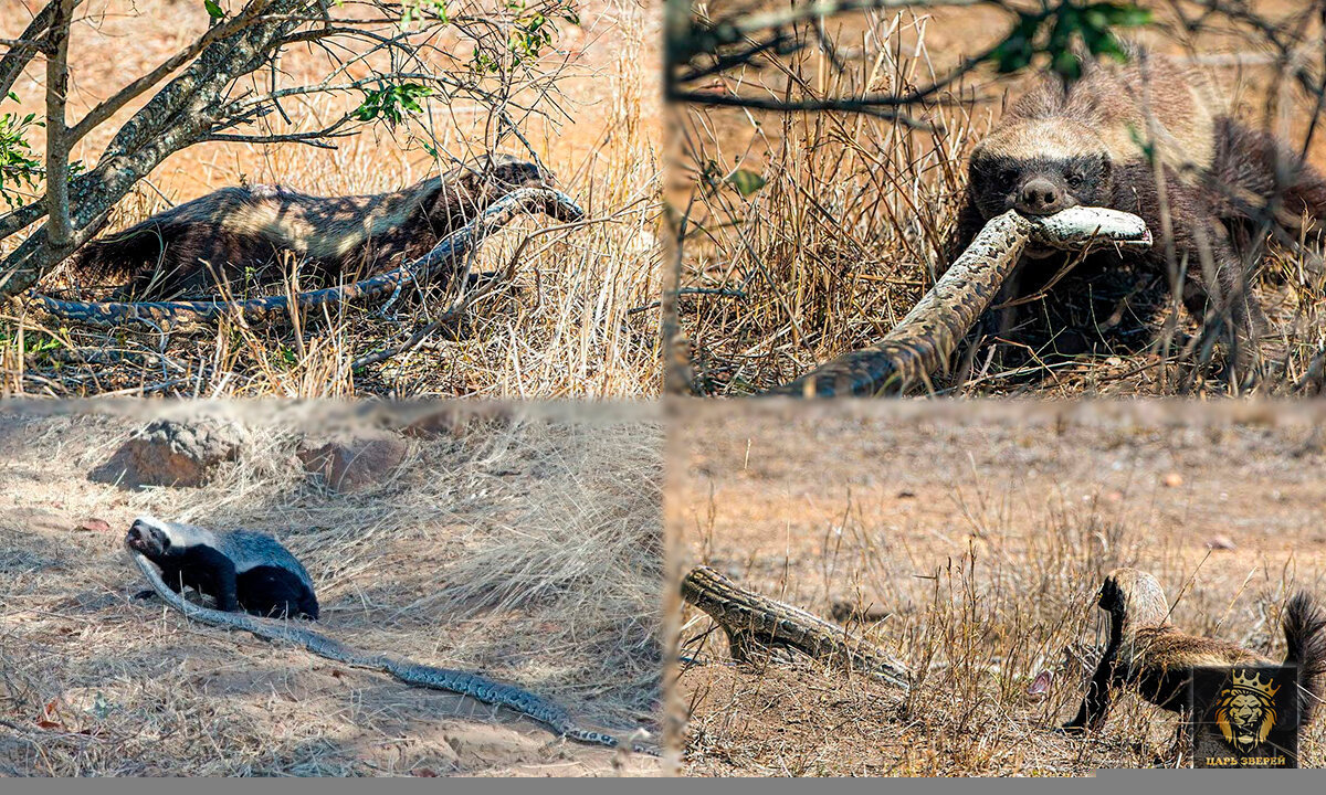 а медоед он такой, ему на все насрать, он прет и не вставай у него на пути... а питону не повезло...