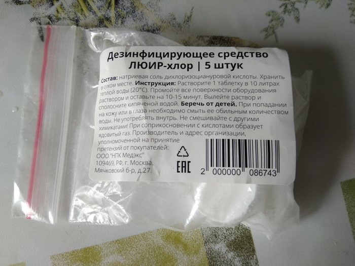Для начала нужно было хорошенько отмыть бродильную ёмкость. Для этого приобрел вот такие хлорные таблетки. Пахнут они туалетами в провинциальных поликлинниках и грустью. Потом всё тщательно смыл водой.