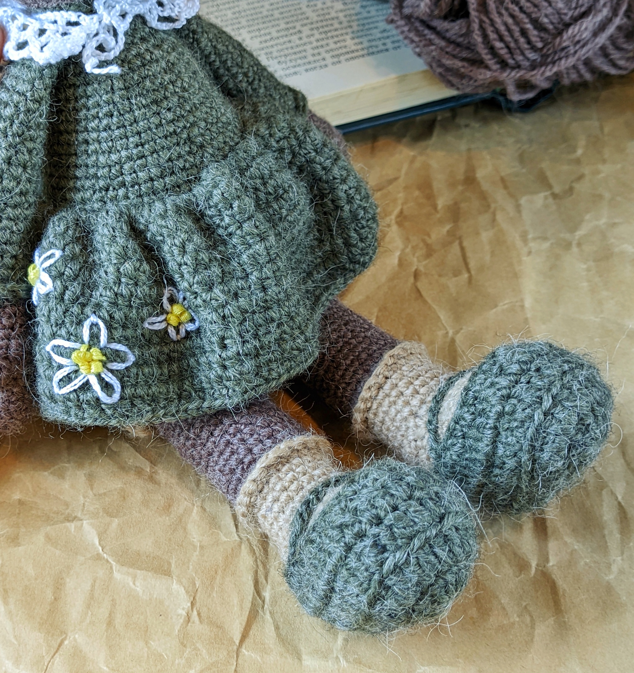 Размером вышла примерно 30 см. Шляпка и тапочки снимаются.