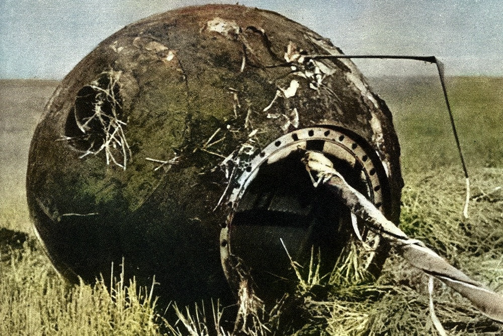 P.S. На фото је космичны апарат чрєз нєколико часин по приземјенју Гагарина. Фотографија је колорована неуросєтју.