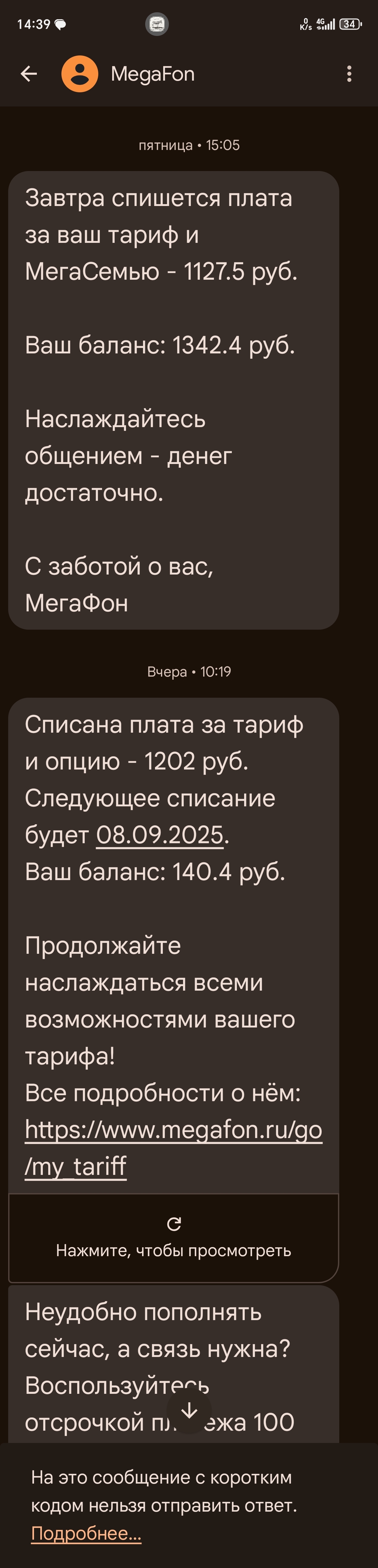 Приходит в пятницу смс, вроде все норм (на самом деле нет, так как нежданчик уже прилетел, и я пропустил смс, чем нахлобучился на 300 рублей).