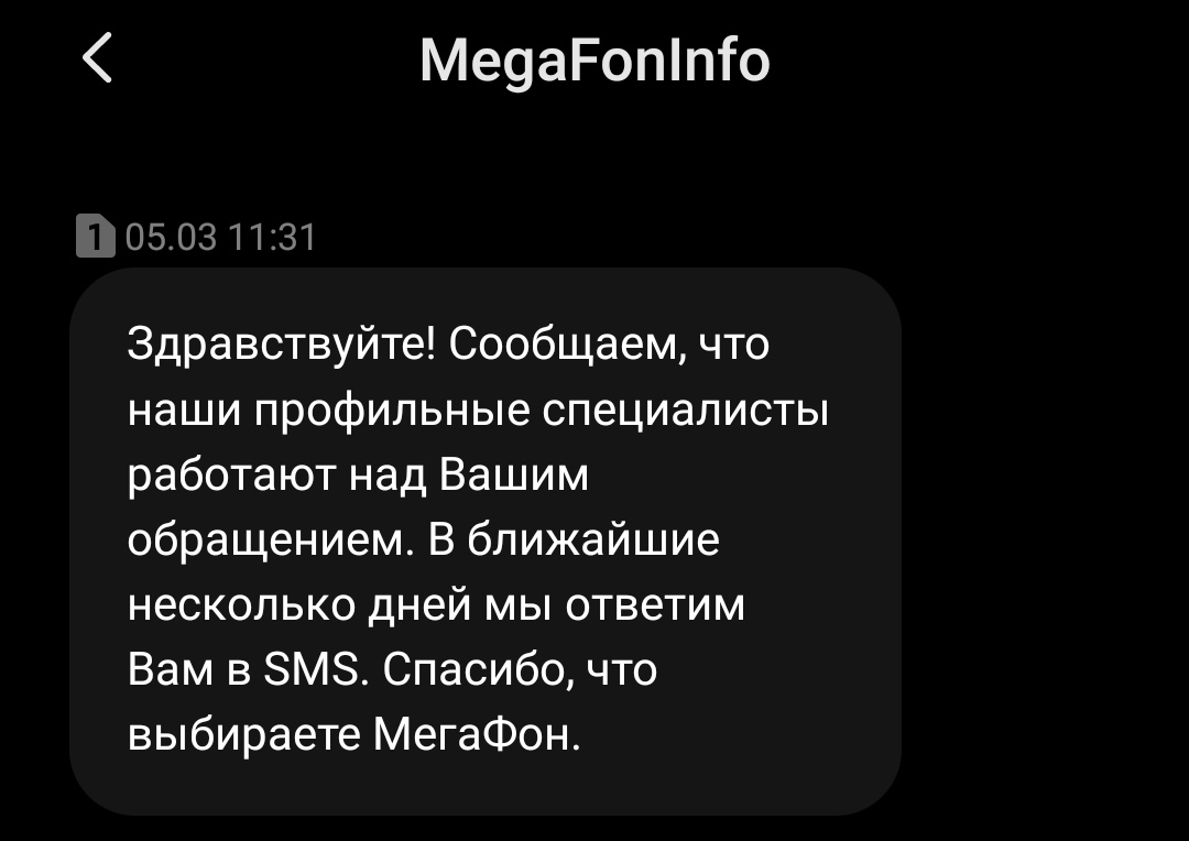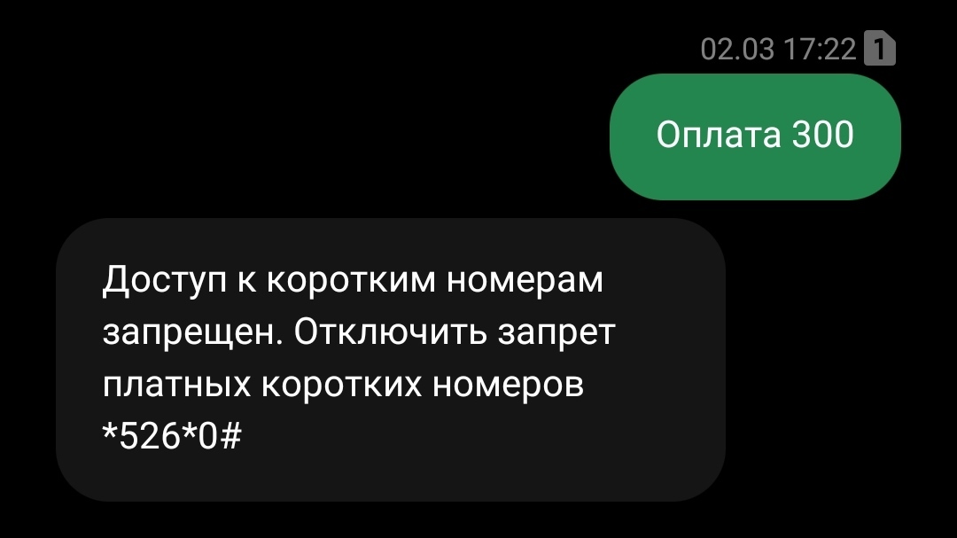 И вот я в очередной раз отправляю СМС и мне приходит ответ