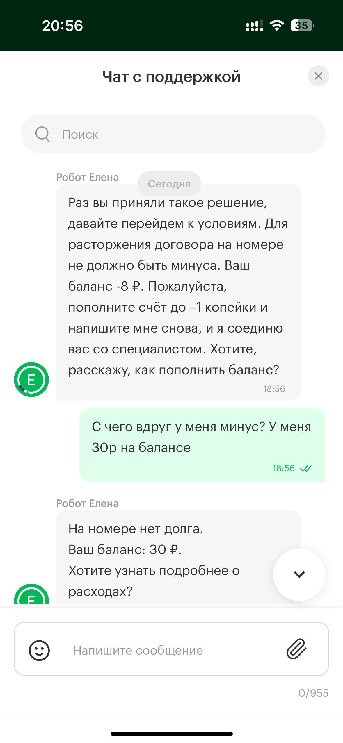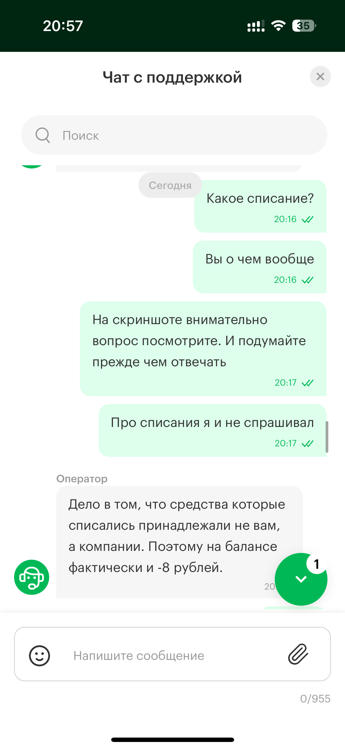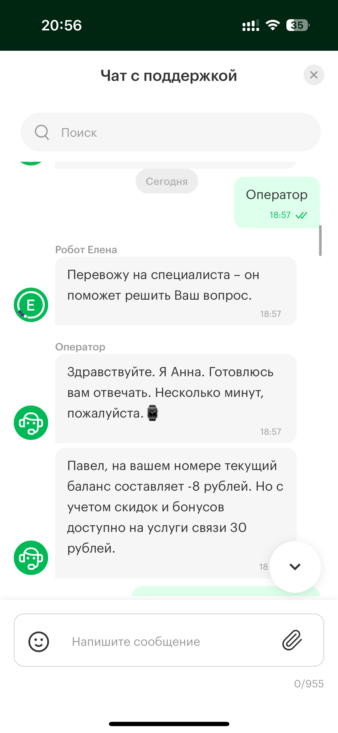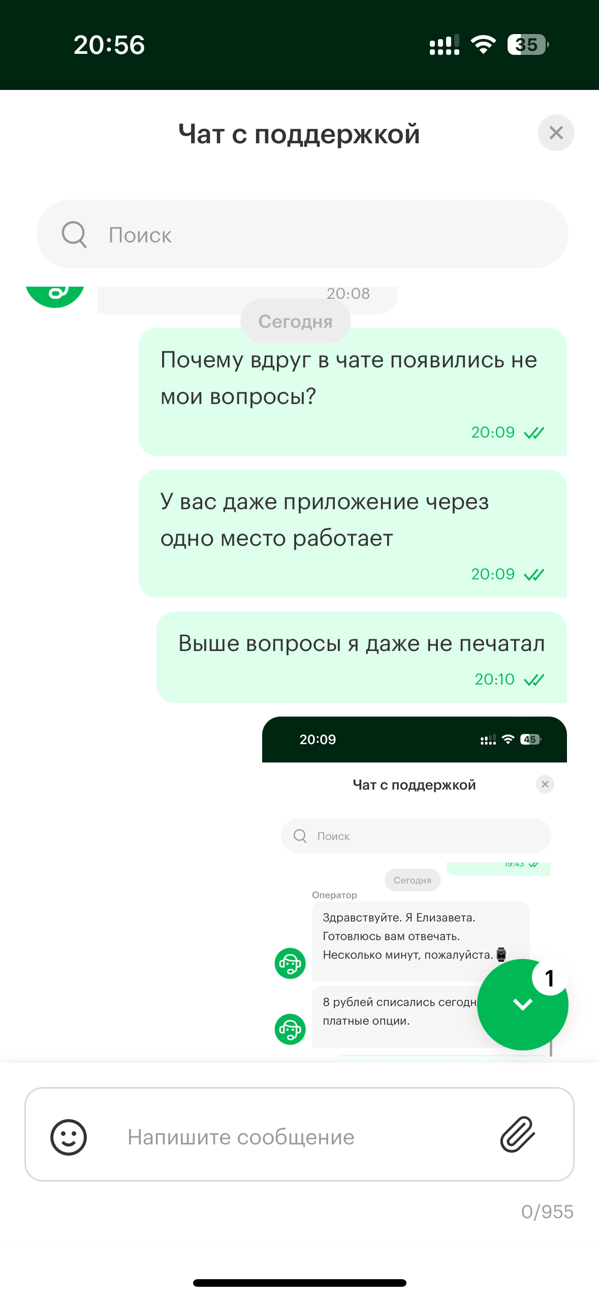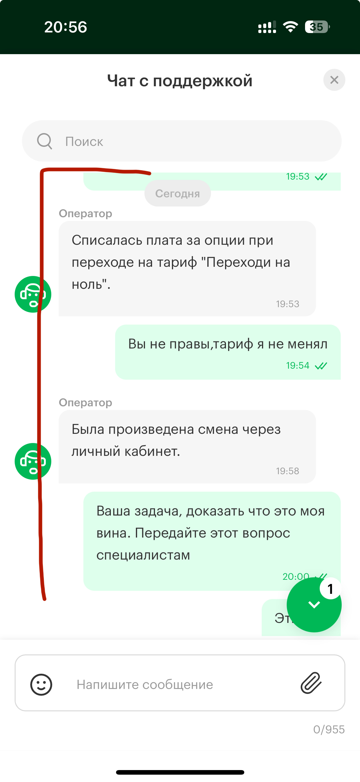 А дальше можете все видеть на скриншотах... Ладно с этими 8р в минус и тд... Но потом где я отметил красным, эти сообщения я вообще не писал. Тоесть понимаете этот бред? Я сменил тариф (смена бесплатно) а у кого-то другого видимо сняли эти 90р, не удивлюсь если ещё и тариф поменяли. И все это в моём чате с оператором. Это что получается тупо глюк? Или один номер на двоих? @megafon,