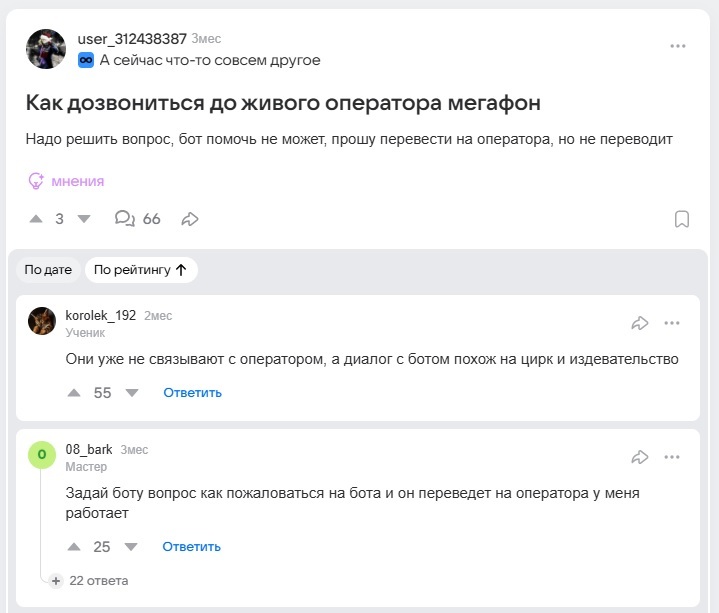Вопрос к пользователям Мегафона (на сам Мегафон мне трижды похуй, даже если он мне ответит): как вы терпите такой пиздец? Или может мне так не повезло? Но судя по тому, что я нарыл в интернете в поисках способа пробиться к оператору, не только мне.