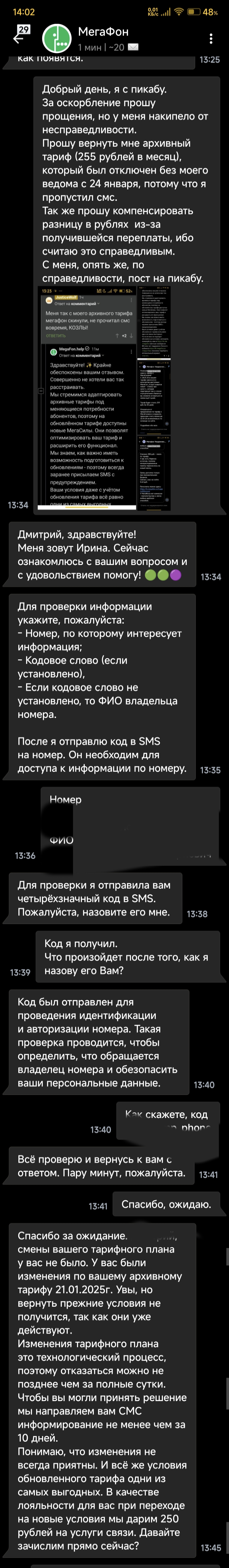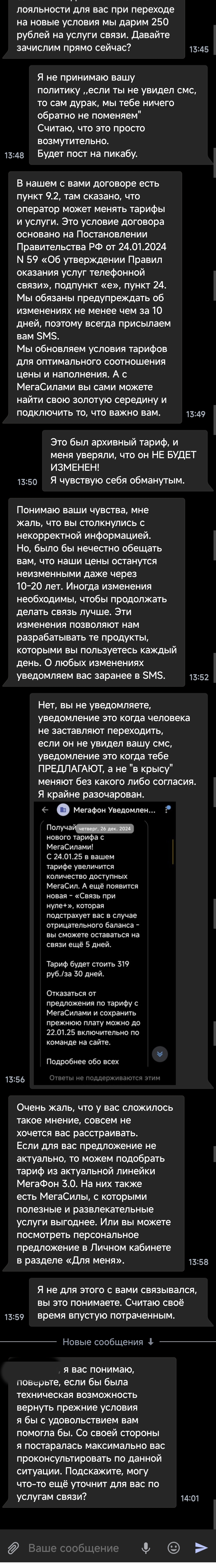 на то, что мегафон сменил мне тариф из-за того, что я НЕ ПРОЧИТАЛ СМС, сотрудник техподдержки предложил со мной пообщаться. Не надеясь на что либо, я связался с ним,