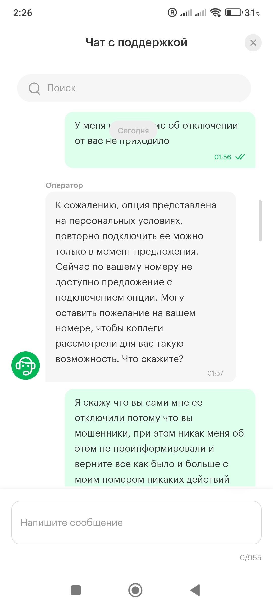 Я скажу что вы сами мне ее отключили потому что вы мошенники, при этом никак меня об этом не проинформировали и верните все как было и больше с моим номером никаких действий сами без меня не производите.