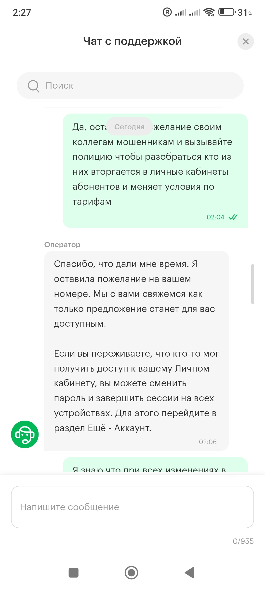 Да, оставляйте пожелание своим коллегам мошенникам и вызывайте полицию чтобы разобраться кто из них вторгается в личные кабинеты абонентов и меняет условия по тарифам
