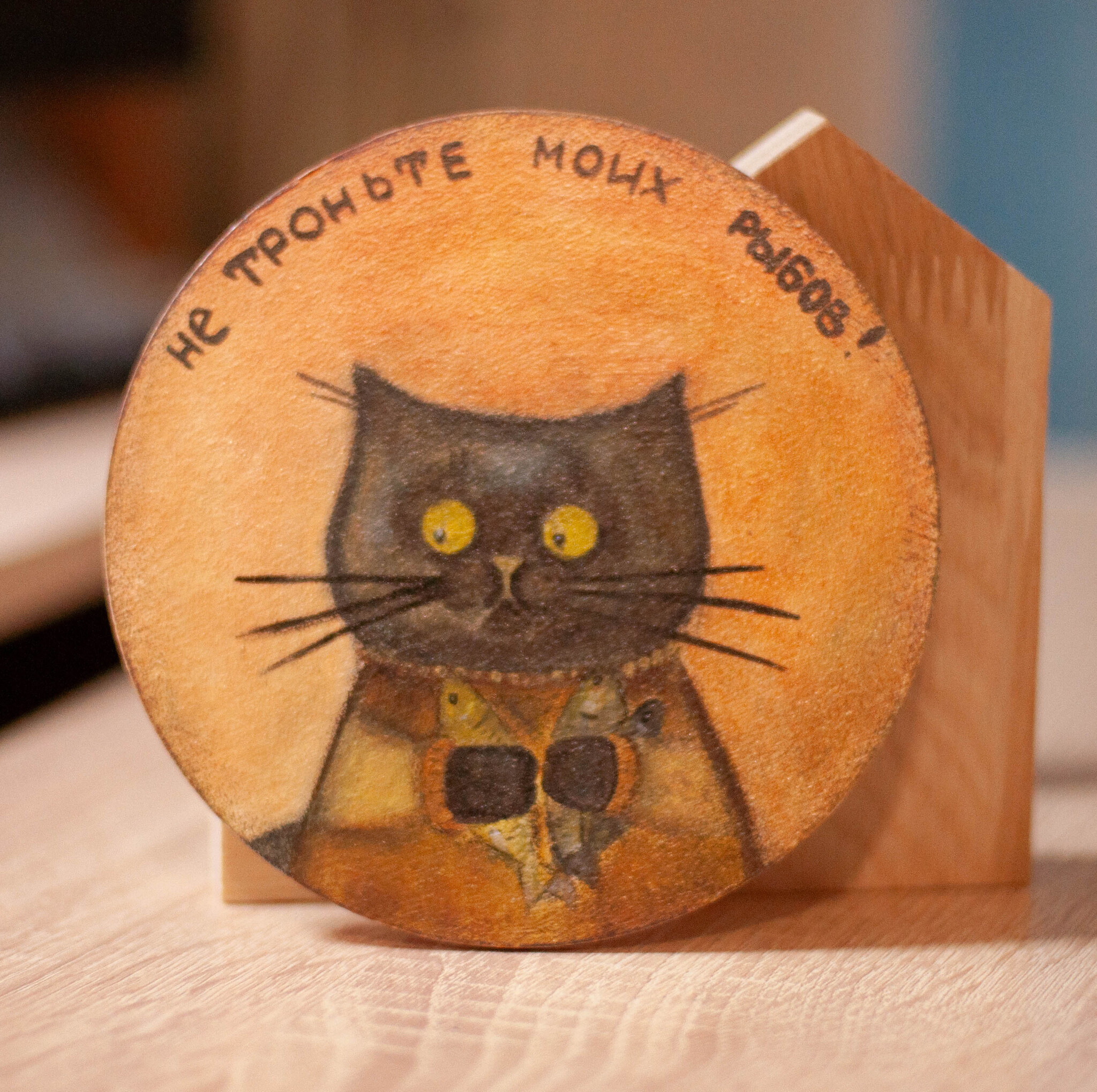 Моя новая работа в смешанной технике, большой магнит на холодильник, диаметр 14см. Основа дерево+грунт. В работе акрил и масляная пастель. Покрытие художественный лак.