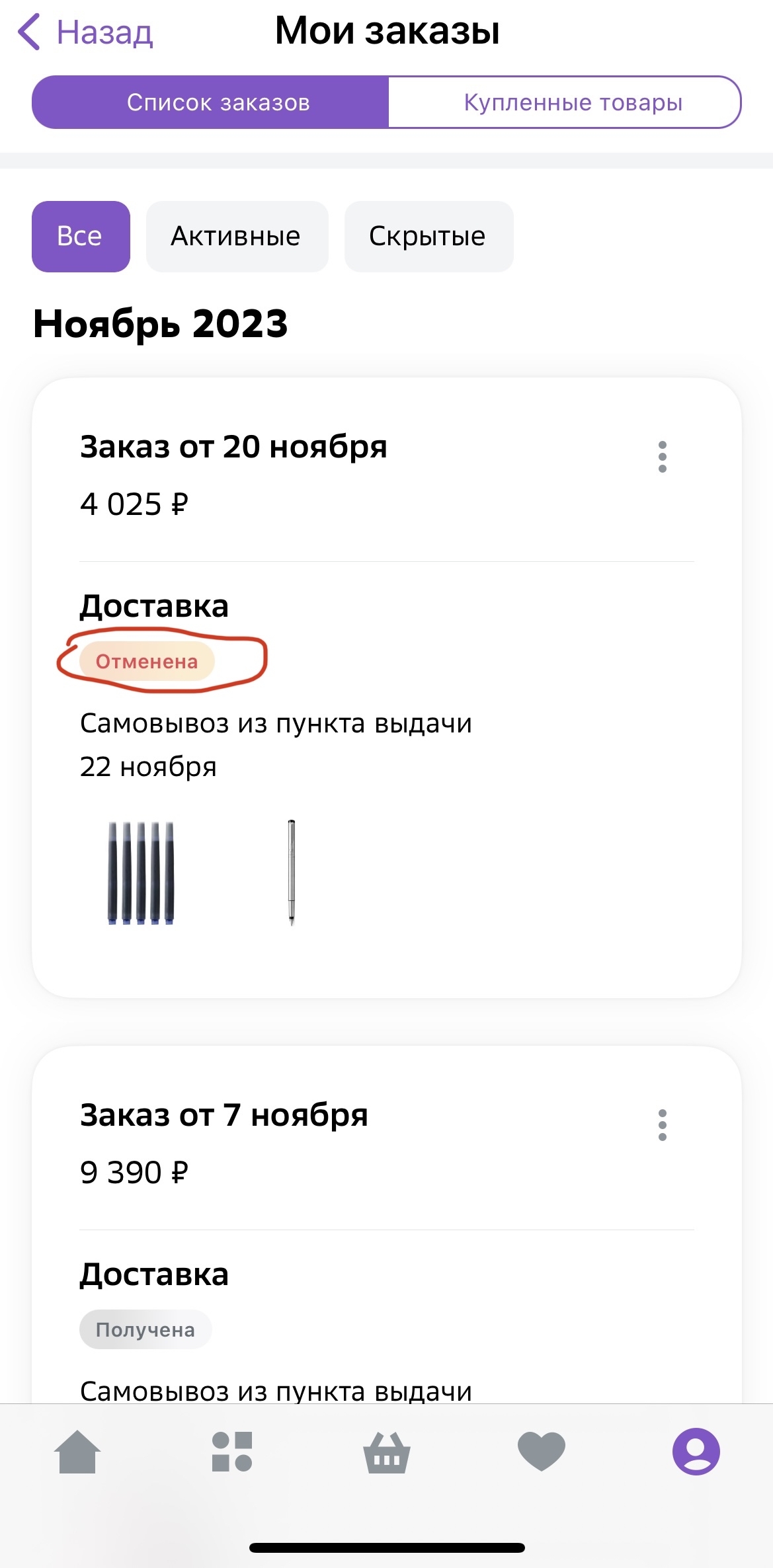 Доставки все до одной задерживаются, иногда доходит до полутора месяцев! Все мои заказы по промокоду и со скидками были отменены! Доставляют только то, что куплено по цене выше, чем на других маркетплейсах! При всем при этом, после отмены самим мегамаркетом таких заказов - деньги возвращаются очень долго, доходит до 14 дней! Толку от ваших промокодов? Вы мне не доставили ни один товар, купленный по промокоду! А так же задержаны заказы на месяц, которые даже отменить нет возможности! Чата поддержки нет, по телефону не дозвониться, пробовал неоднократно. Не рекомендую данную площадку.