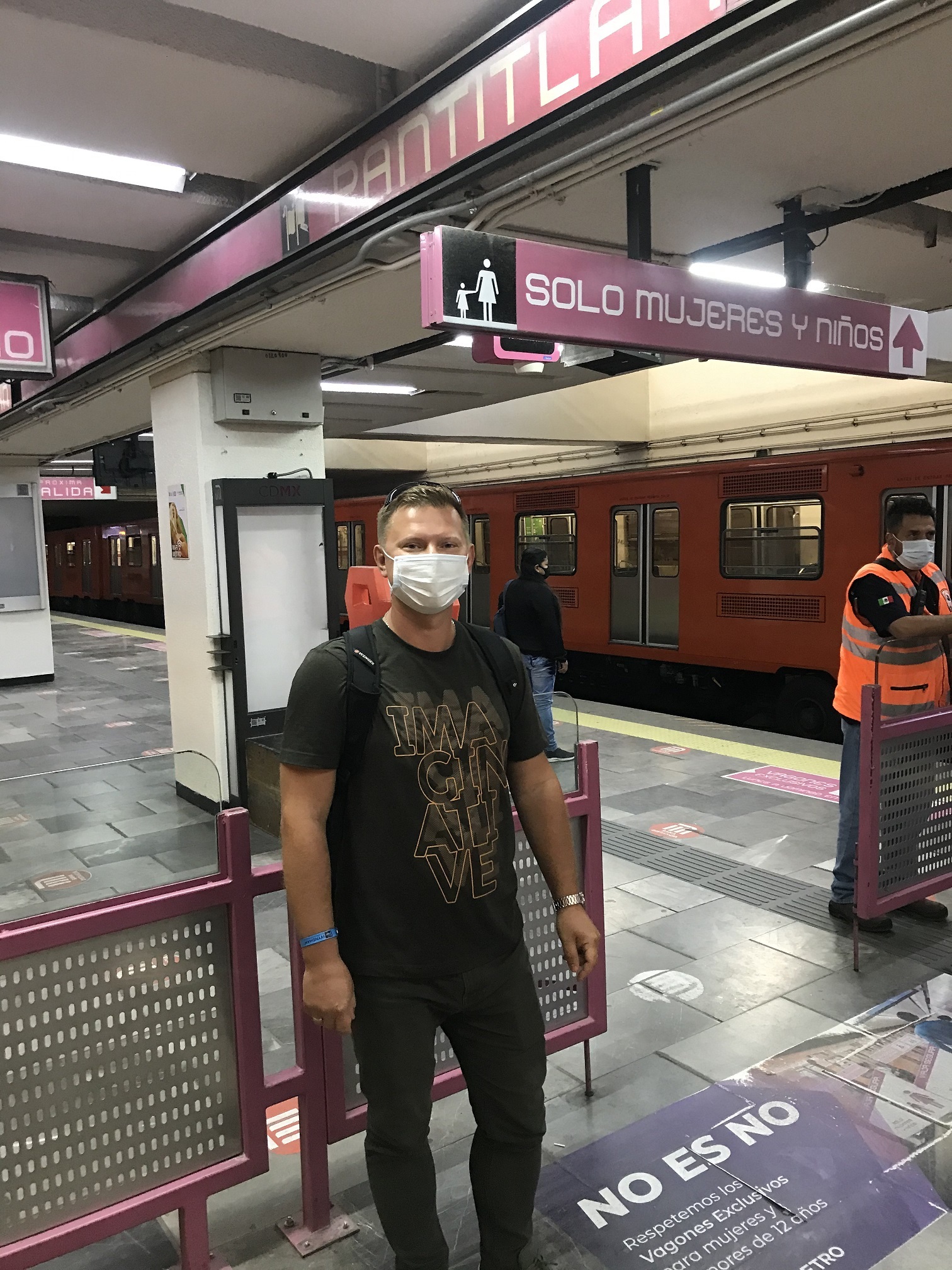 Вот удобнейшая вещь – из гигантского аэропорта Мехико в любую часть города можно добраться на метро! Что мы и сделали. Метро в Мехико странное: во-первых, составы ходят на резиновых колесах - не как у поездов, а как у автобусов - идею позаимствовали у Парижского метро. Во-вторых, на что мы сразу обратили внимание: выкрашенные в розовый цвет первые вагоны поезда – «только для женщин и девочек». Вход в эти вагоны через турникет, охраняемый полицейским. Как поясняют плакаты, расклеенные по вагонам, сделано это для того, чтобы избежать домогательств к представительницам слабого пола со стороны горячих мексиканских мачо. Надо сказать, что немногие дамы садились в эти вагоны. В обычном, в котором ехали и мы, «девчонок» тоже было изрядное количество. Кстати, это такое странное чувство – ехать в вагоне, где почти все люди - и мужчины, и женщины ниже тебя ростом. Притом, что в тебе самом всего 173 сантиметра.