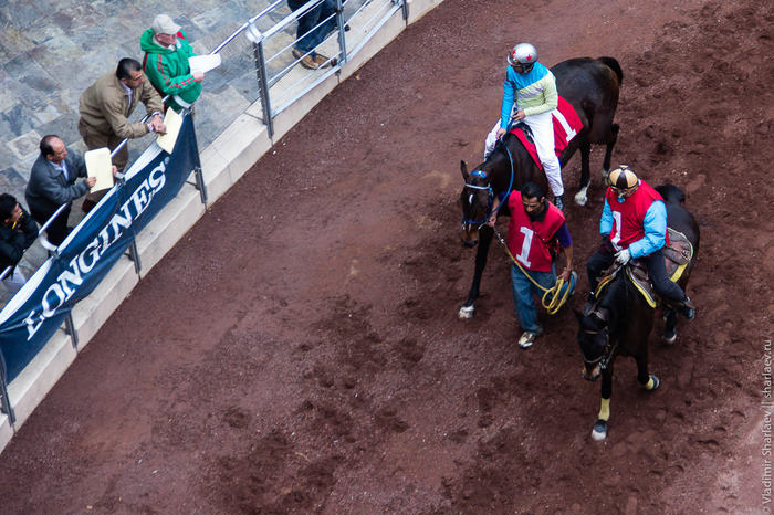 Забеги проходят раз в 30-40 минут. Жокеи взвешиваются и на табло в центре поля появляется информация, насколько они превышают минимальный лимит. Похоже, за весом они следят весьма дотошно — максимальный «перевес» был всего два килограмма, а в среднем все укладываются в полкило — килограмм!
