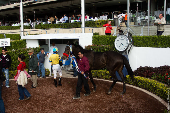 В день проходит примерно 10 забегов. Мы пришли к третьему и сразу же сделали небольшие ставки. Специально обученный человек протрубил в горн, мимо зрителей провели лошадей, уже оседланных жокеями. Интересно, что каждую «боевую» лошадь сопровождает еще одна рабочая лошадка. Комментатор что-то рассказывает, потом убыстряется и вдали, на другом конце поля, я замечаю быстро едущую машину скорой помощи, которая, как оказалось, несется вслед за cтартовавшими участниками забега.