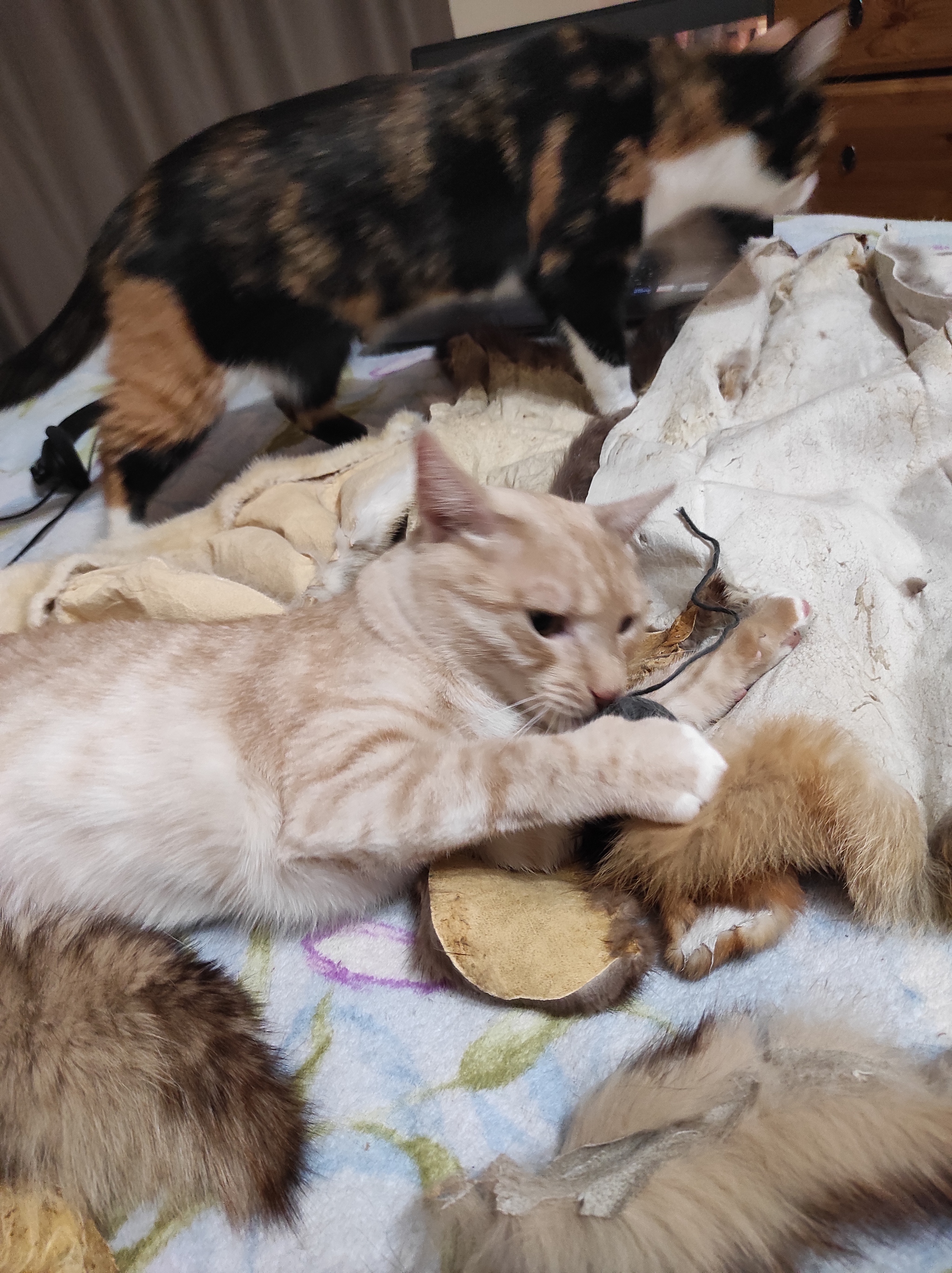 Да, на нем будет лежать только Тима и в редкие дни уединения. Соня, на правах мелкой, одной булкой присела и ушла лежать на шкаф.