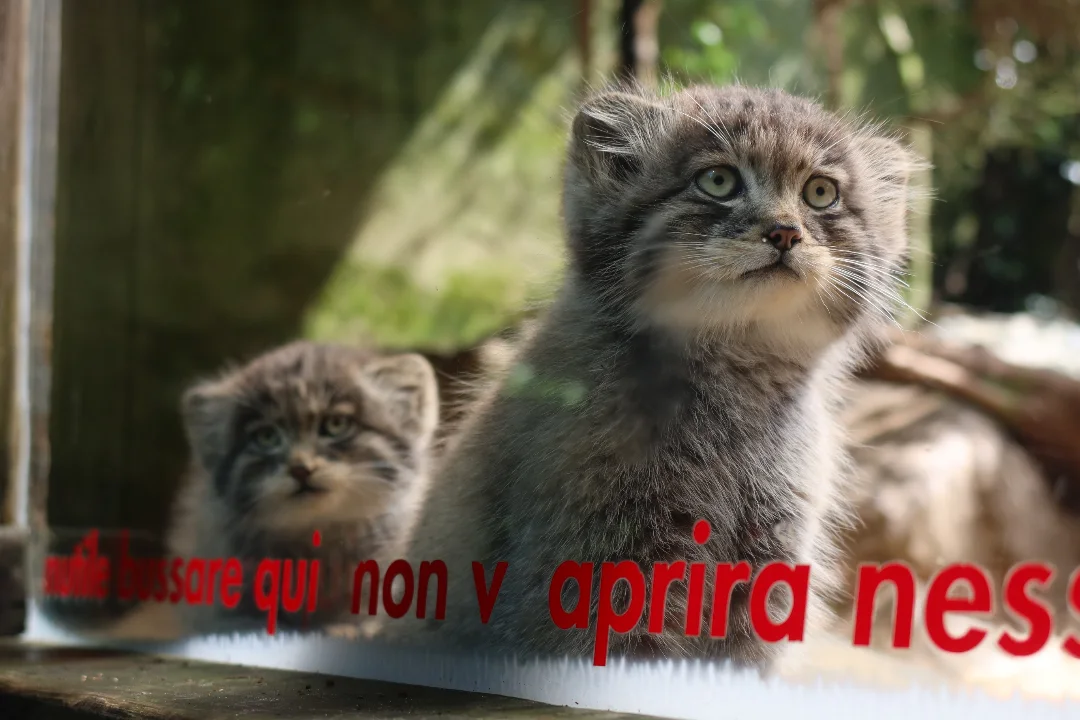 Перевела надпись с итальянского: не стучать по стеклу. Справедливо, нечего маленьких пугать!