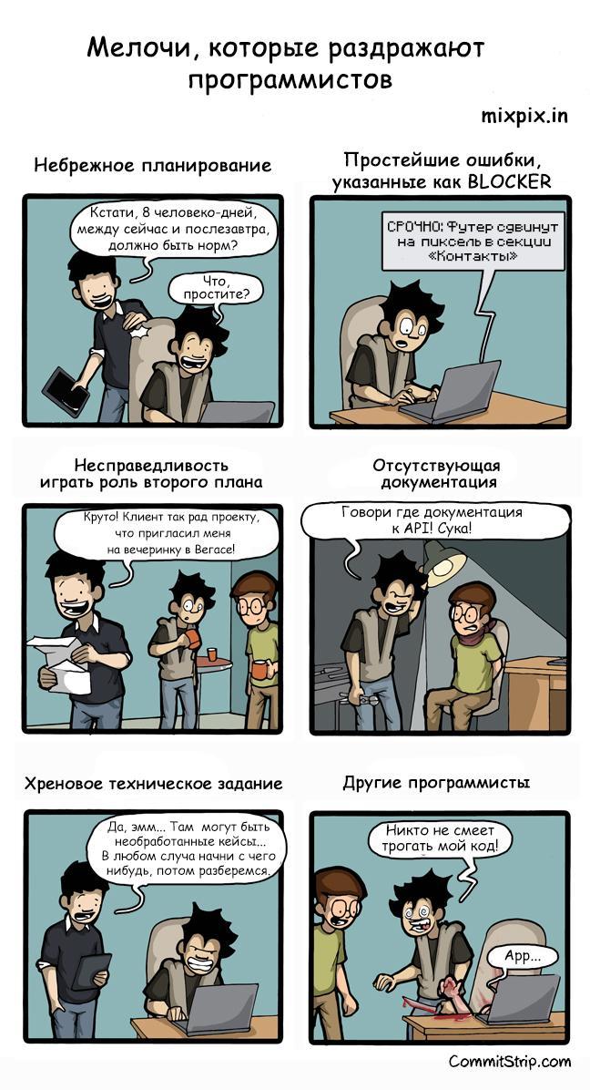 684 ktun IT-юмор Мелочи которые раздражают программистов 9 лет назад комикс отсюда https://mixpix.in/more/melochi_kotorye_razdrazhayut_programm... Комиксы Программист Commitstrip