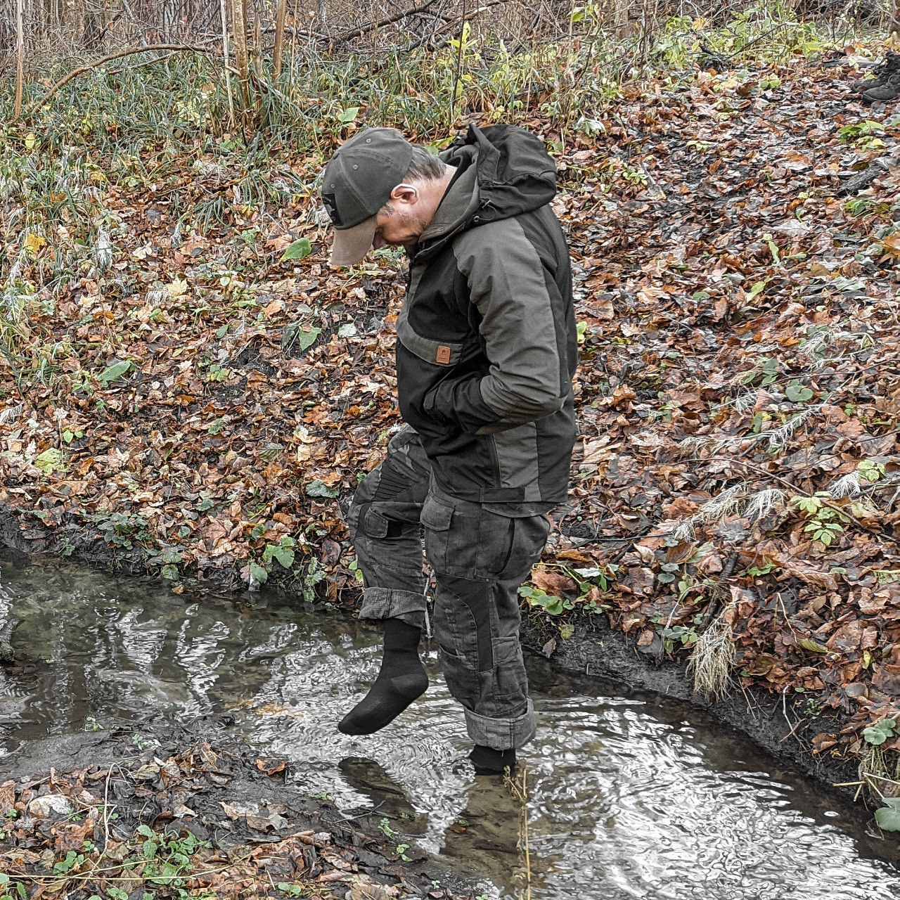 Тест мембранных носков. Ноги после 10 минут нахождения в воде полностью сухие.