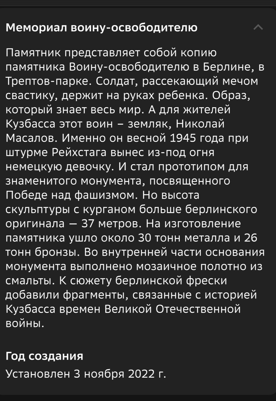В Трептов парке целый комплекс. Там и знамена склонившиеся из красного гранита и "вграниты" с цитатами. Интересно, весь воспроизведут, кемеровцы.