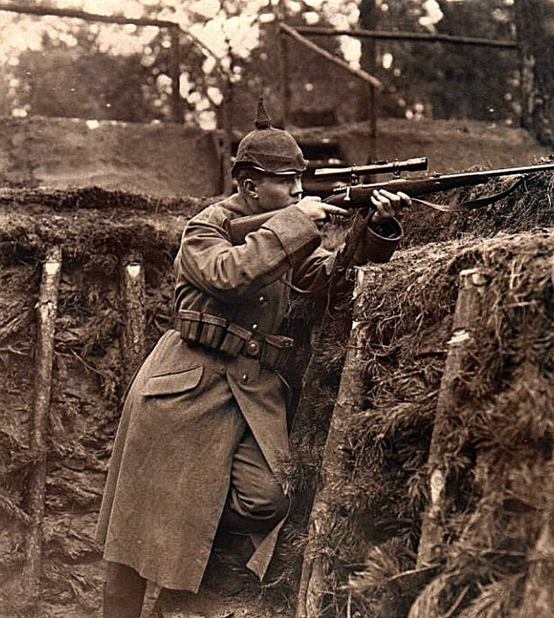В годы I мировой войны снайперами стали называть стрелков «работающих» с замаскированных позиций. Первые наблюдения на передовой показали, что снайпером мог стать любой меткий стрелок, лишенный рефлексии и относившейся к цели в образе человека как к дичи. В снайперы брали людей уравновешенных, хладнокровных, не подверженных ненависти к солдатам противника, видящих их в роли потенциальных охотничьих трофеев.