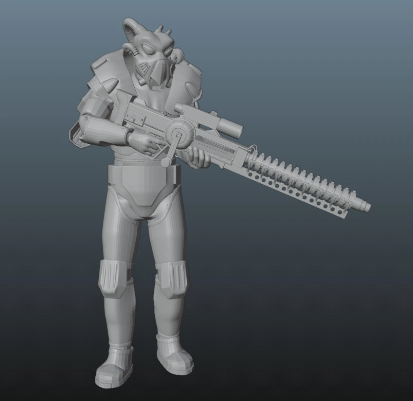Вот уберем у парня с пулеметом оружие из рук, вставим ему винтовку гаусса от предыдущей модельки и мы великолепны. Да?