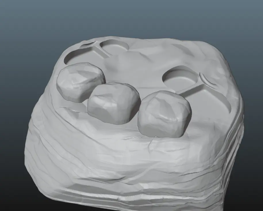 Попросили сделать три варианта фраз по нажатию трёх кнопок. В подставке, которая из себя представляет песчаную скалу, будет просто три нажимных выступа для этого.