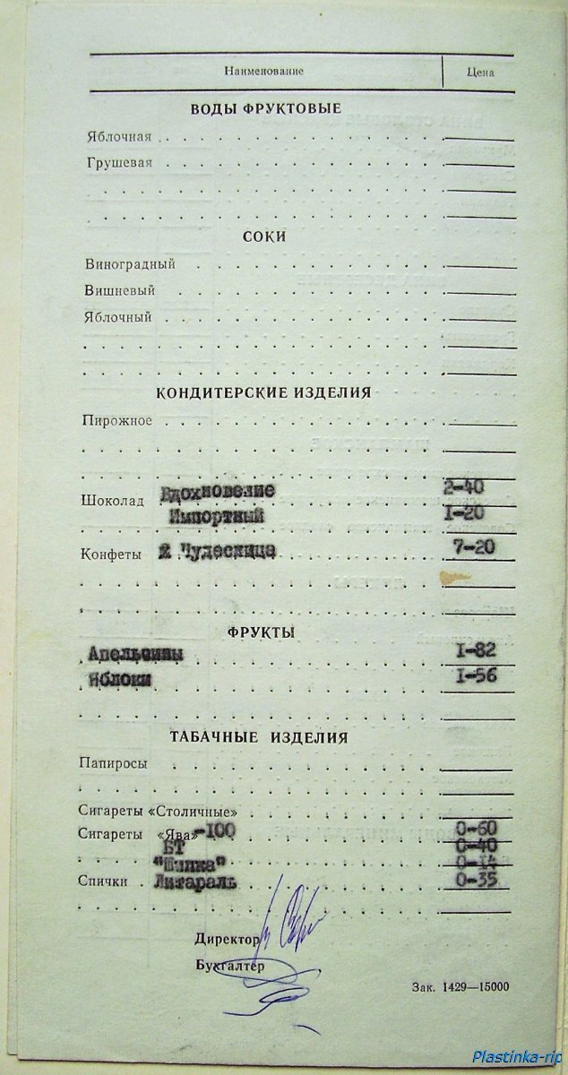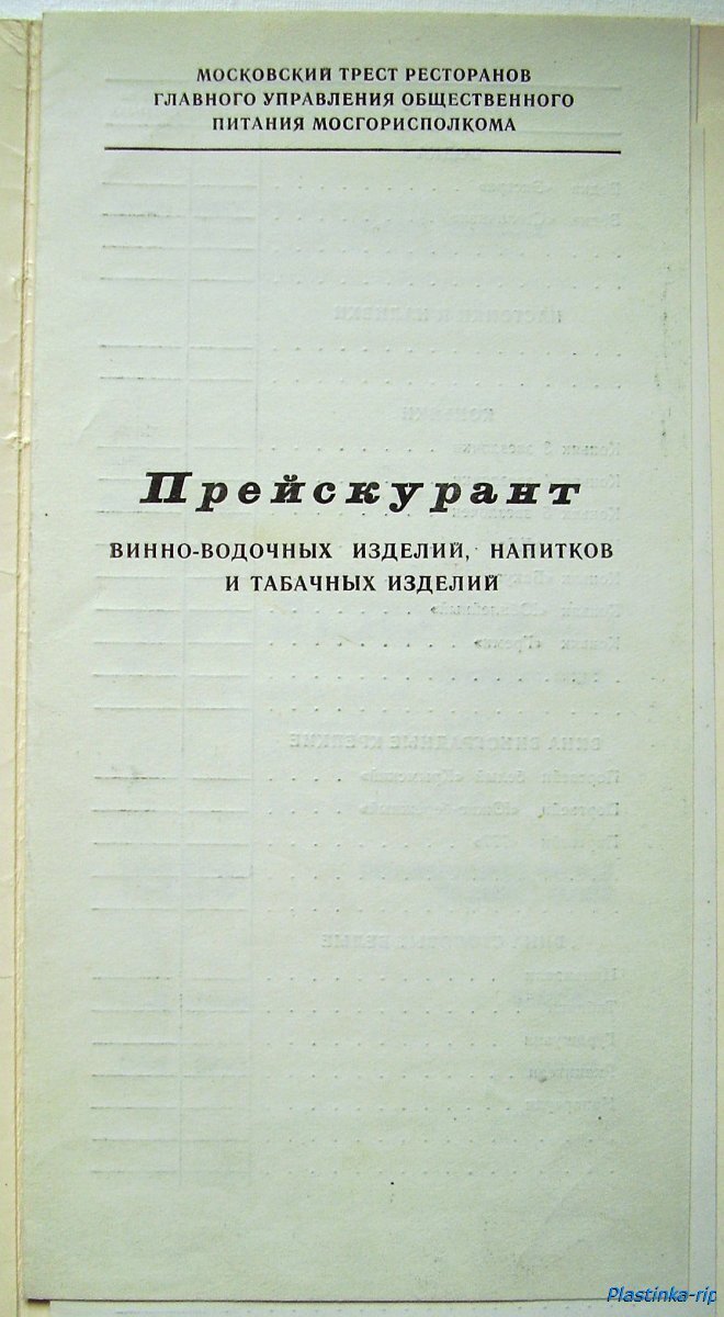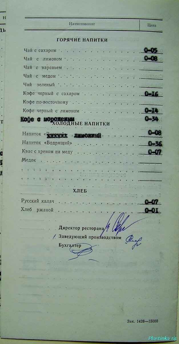 Меню советского ресторана. 70-е