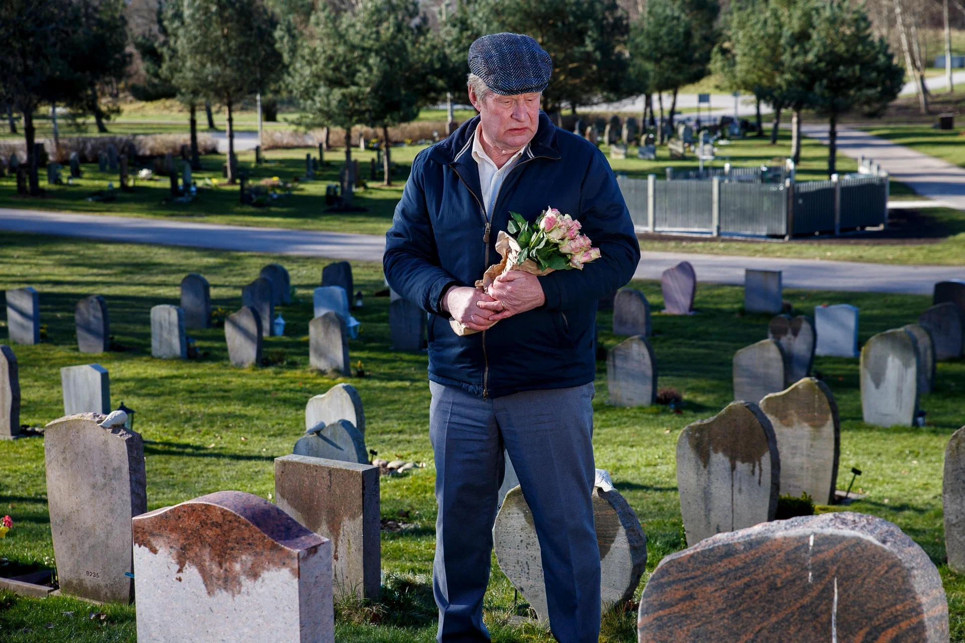 И это, на минуточку, главный герой. Как ему можно сопереживать? Да легко, ибо фильм-то на самом деле о любви. Ну, то есть вам заявляют главного героя с нарочито отвратительным характером, который уже в первой сцене срётся с продавщицей в супермаркете, но буквально в следующем кадре ты видишь, ради чего он это делает. Спойлер — его жена, любовь всей его жизни, скончалась, и он ежедневно ходит на её могилу с кустовыми розами. И разговаривает с ней. И обещает очень скоро к ней присоединиться (да, примерно в течение первых двадцати минут фильма нам покажут первую попытку самоубийства главного героя. Что? У него есть цель — он не видит препятствий. При этом всём препятствие случается. В виде новых соседей: шведа и персиянки с их двумя детьми.