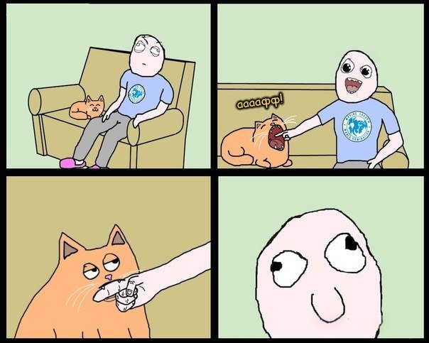 Сейчас когда зевал, кошка засунула мне лапу в рот.