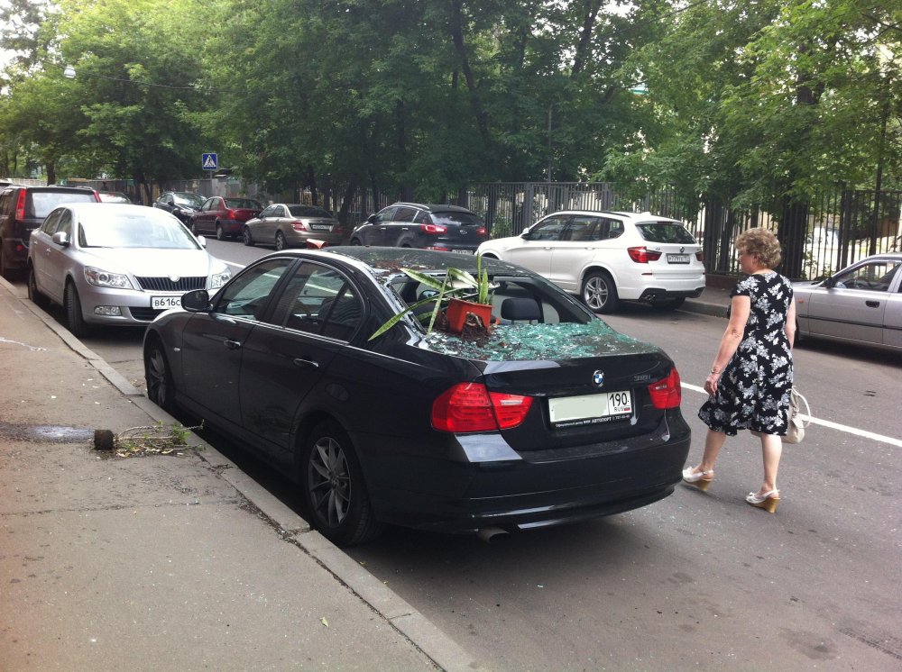 Сам горшок так до машины бы не долетел. От стены любого жилого дома до края бордюра пару метров есть точно. Спецом засандалили - блядство редкостное.