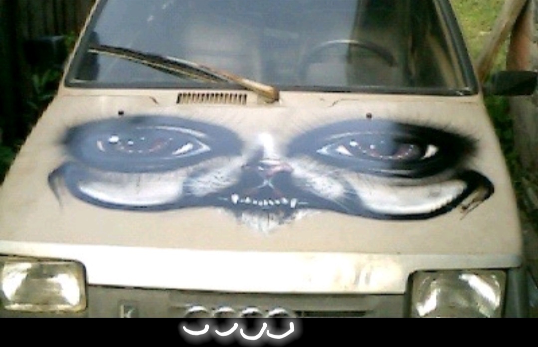 Неее)) из блатного только были знак ауди спереди, знак бмв сзади, и морда на капоте)) А, ну и устращающий рёв, ибо глушитель я в первую же поездку в поле оставила :D