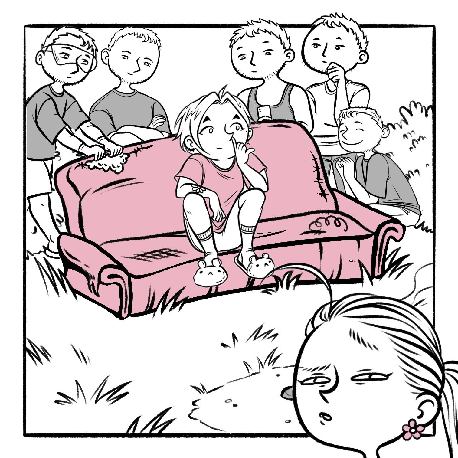 В лесу, куда я хожу за грибами, прямо посреди нигде лежит и постепенно разваливается диван. От него остались теперь одни пружины. Лежит, по всей видимости очень давно, тк за 10 лет, что я за ним наблюдаю, он почти не изменился.