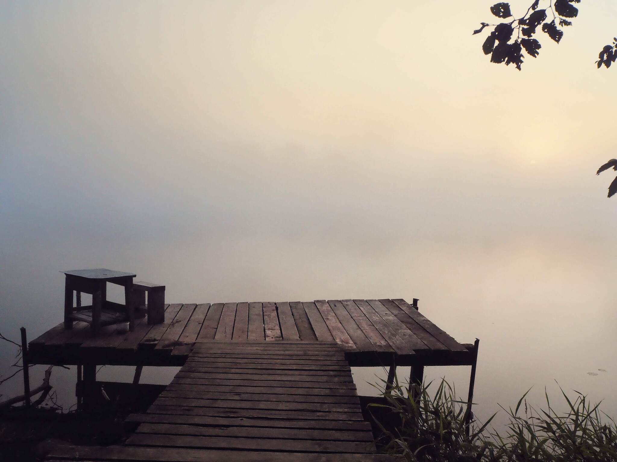 Туман на озере ранним утром.