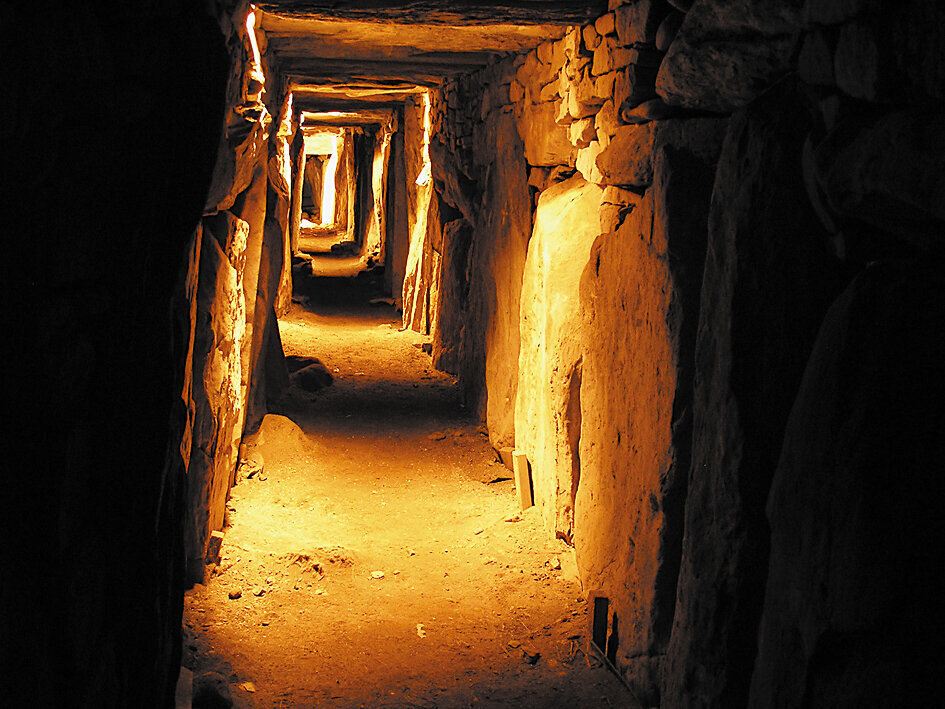 Но вернёмся от легенд к настоящему кургану. Внутрь ведёт обложенный камнем длинный узкий ход, в конце которого расположена погребальная камера. Весь год в ней темно, однако в конце декабря каждого года происходит нечто удивительное и прекрасное.