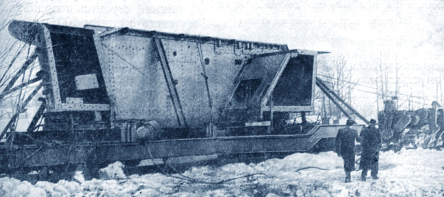 Осенью 1956 года был заложен фундамент РТ-22. Общий вес конструкции — 465 тонн, в разобранном виде детали доставлялись по железной дороге, а затем зимой на специально сконструированных санях перевозились к месту строительства. Для решения этой задачи Чеховским заводом металлоконструкций были изготовлены специальные сани грузоподъемностью 45 тонн