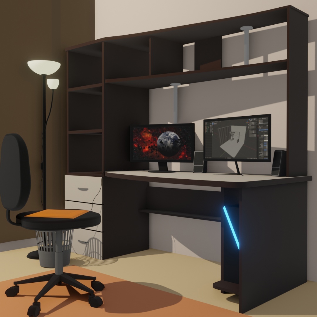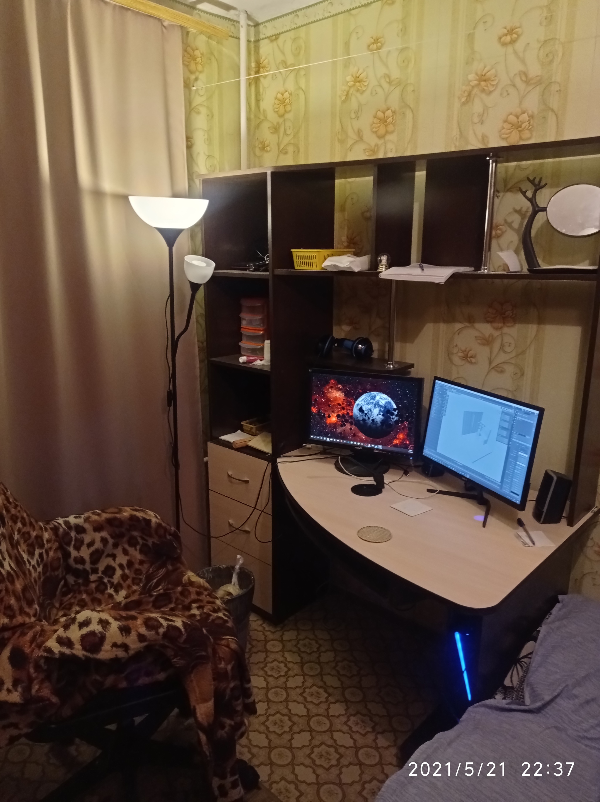 Наконец-то дошли руки выложить работу своего так называемого рабочего места, по сути просто компьютерный стол (уже бывший). Переехала в другой город, пока осваивалась, пока ругалась с ПЭКом (это отдельная история, спойлер: никогда не пользуйтесь ПЭКом)(не реклама), да и другие дела были. Вот так выглядело раньше место, где я занималась моделированием. В детали не углублялась, хотела передать общее сходство. Конечно, есть ещё что подправить, с материалами поработать. Я не возвращалась к этому проекту, чтобы подкорректировать косяки, поэтому как есть)